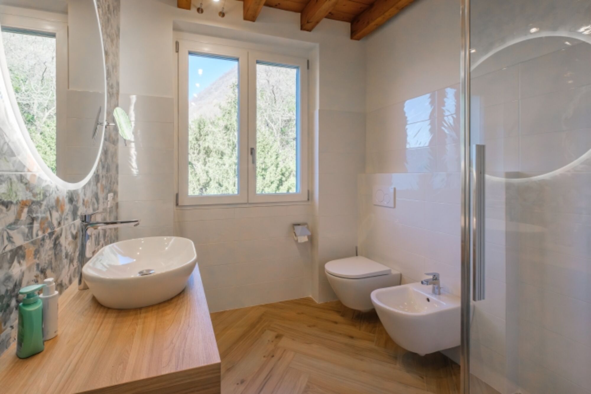 Bidet, Regendusche, Spiegel, Waschbecken