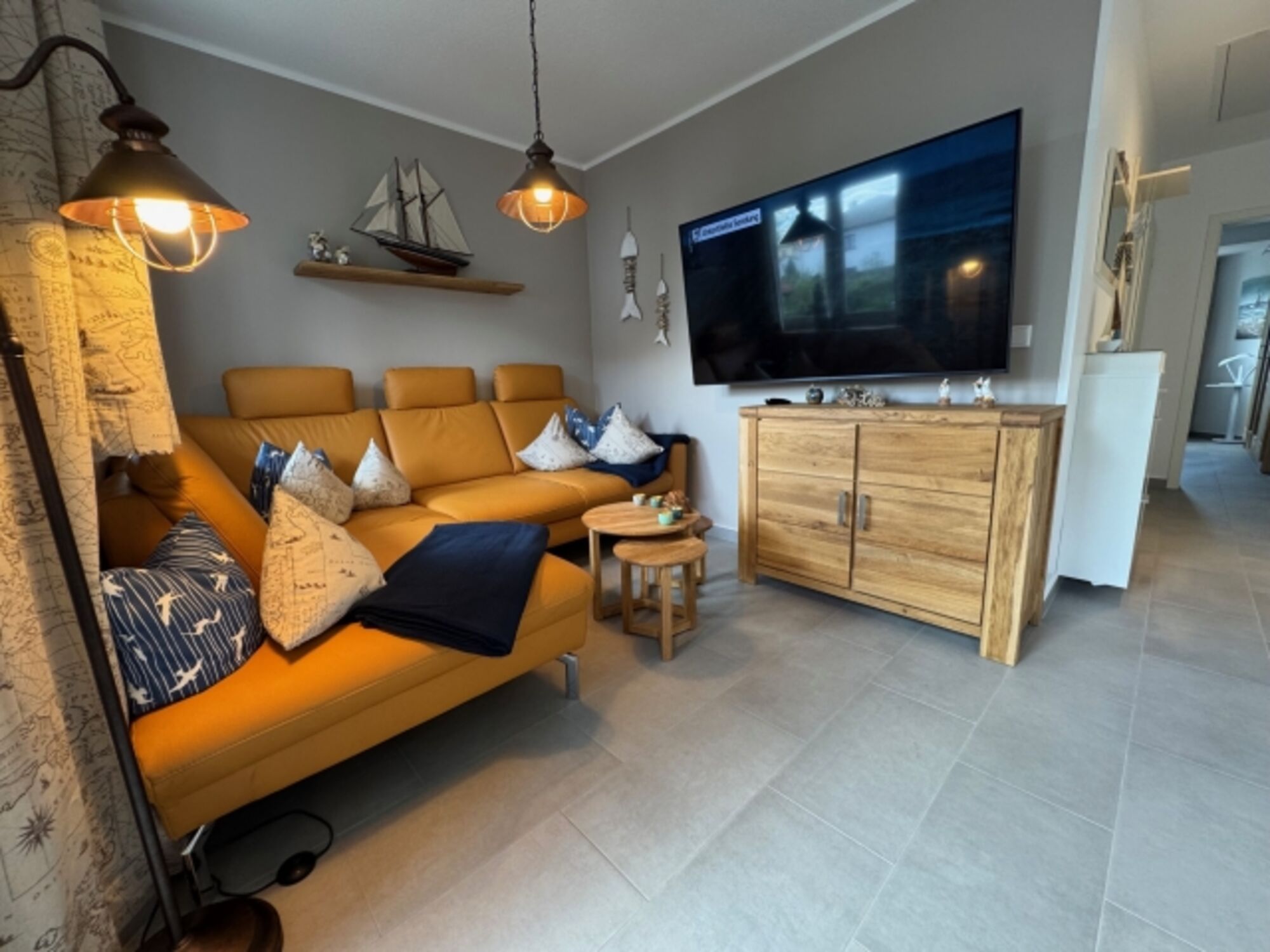 Eine Sofalandschaft lädt zum Verweilen ein und alle Schlafzimmer bieten einen zusätzlichen Fernseher.