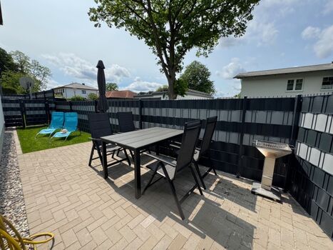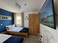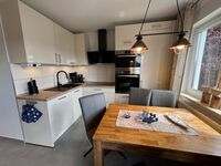 max. 4 Personen + 1 Kleinkind bis zum 3. LJ + 2 Hunde, ca. 400 m zum Strand, Balkon, 1 WZ mit offener KÜ, 1 SZ (180 X 200), 1 SZ (140 X 200), 1 Bad, kleiner eingezäunter Garten mit Terrasse und Grill zur alleinigen Nutzung