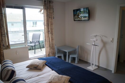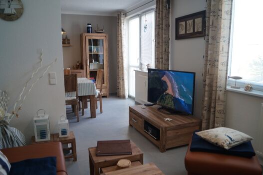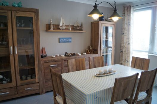 Ferienwohnung Heimathafen: max. 6 Personen + 1 Kleinkind bis zum 3. LJ, 2 Hunde, 200 m zum Strand, 100 m zum Wald, 1 Wohn- / Esszimmer, 2 SZ (SZ groß = 180 X 200, SZ klein = 2X je 80 X 200), 1 KÜ, 1 Bad, 1 Gäste-WC, Balkon