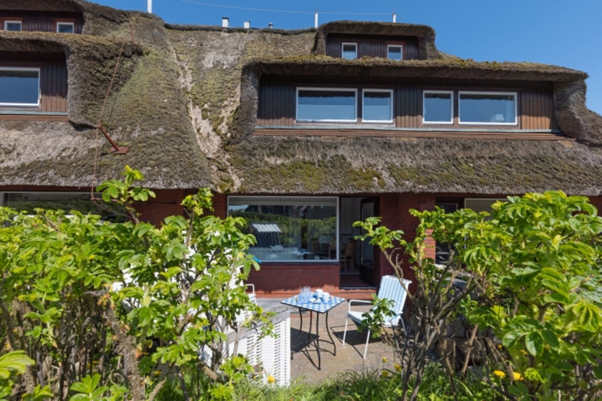 Modernes Ferienreihenhaus unter Reet mit Kamin und großem Garten