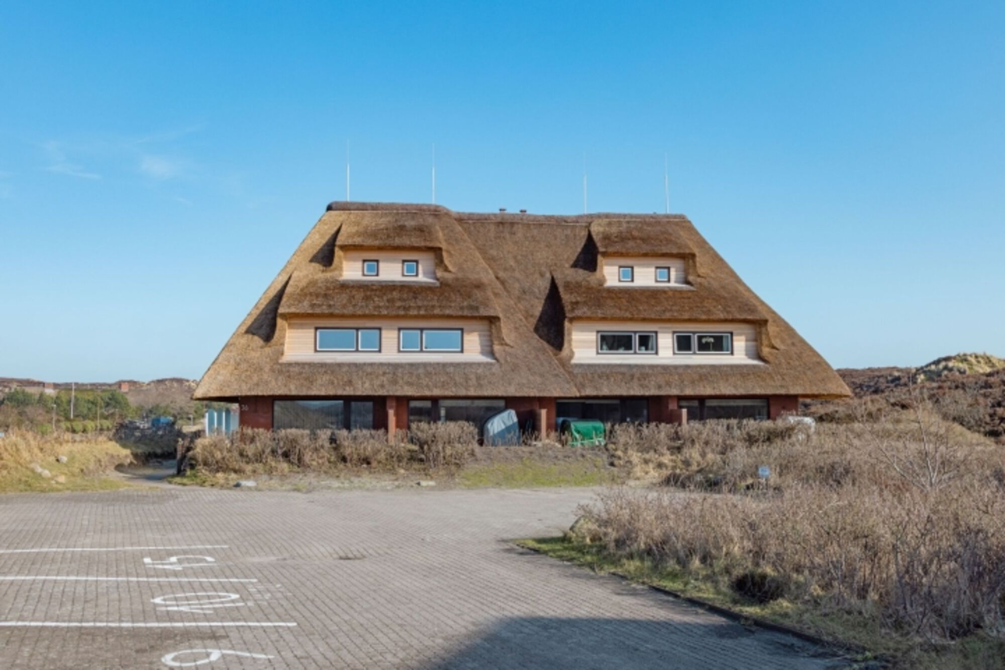 Modernes Feriendoppelhaus unter Reet mit unverbautem Meerblick
