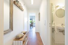 Helles Appartement mit kleiner Terrasse und Strandkorb im Erdgeschoss