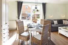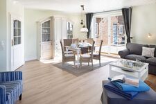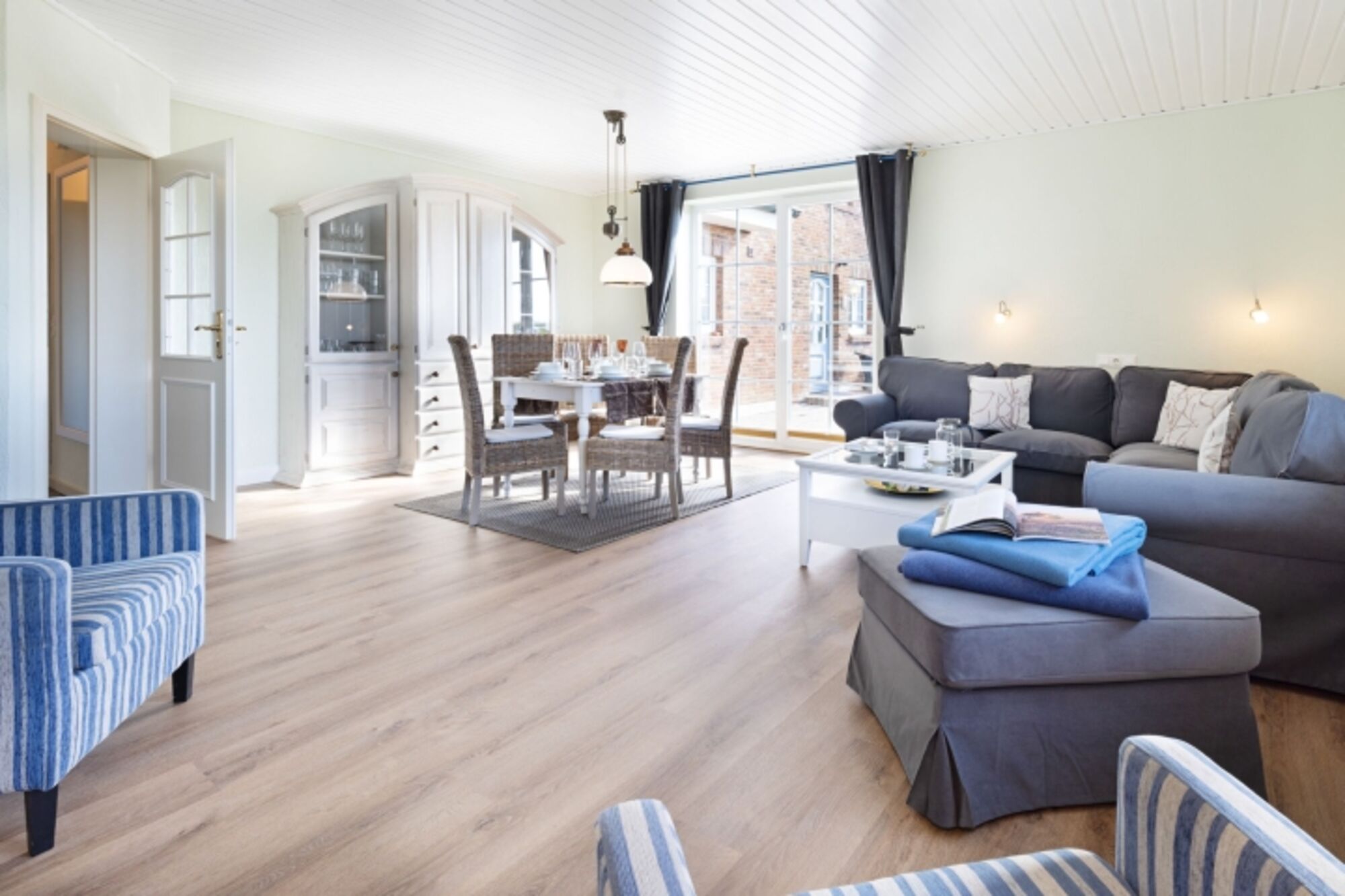 Das Ferienappartement für bis zu sechs Personen und befindet sich im Erdgeschoss. Es verfügt über eine große Terrasse mit Strandkorb und Gartenmöbeln.