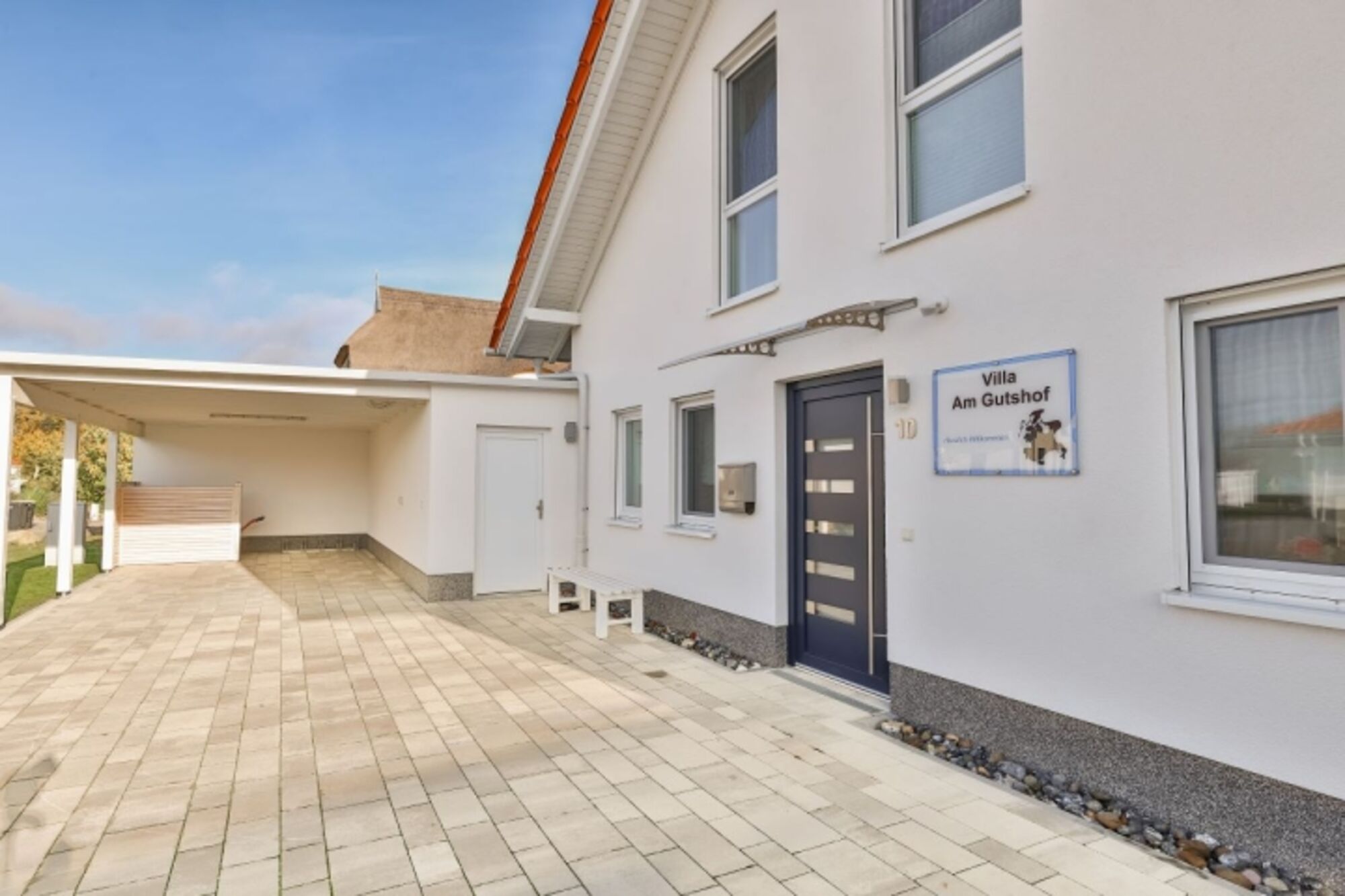 Die Villa "Am Gutshof" liegt in der Seepark Rügen, in Vaschvitz. Der Große Jasmunder Bodden mit seinem Naturstrand ist ca. 200 Meter entfernt.