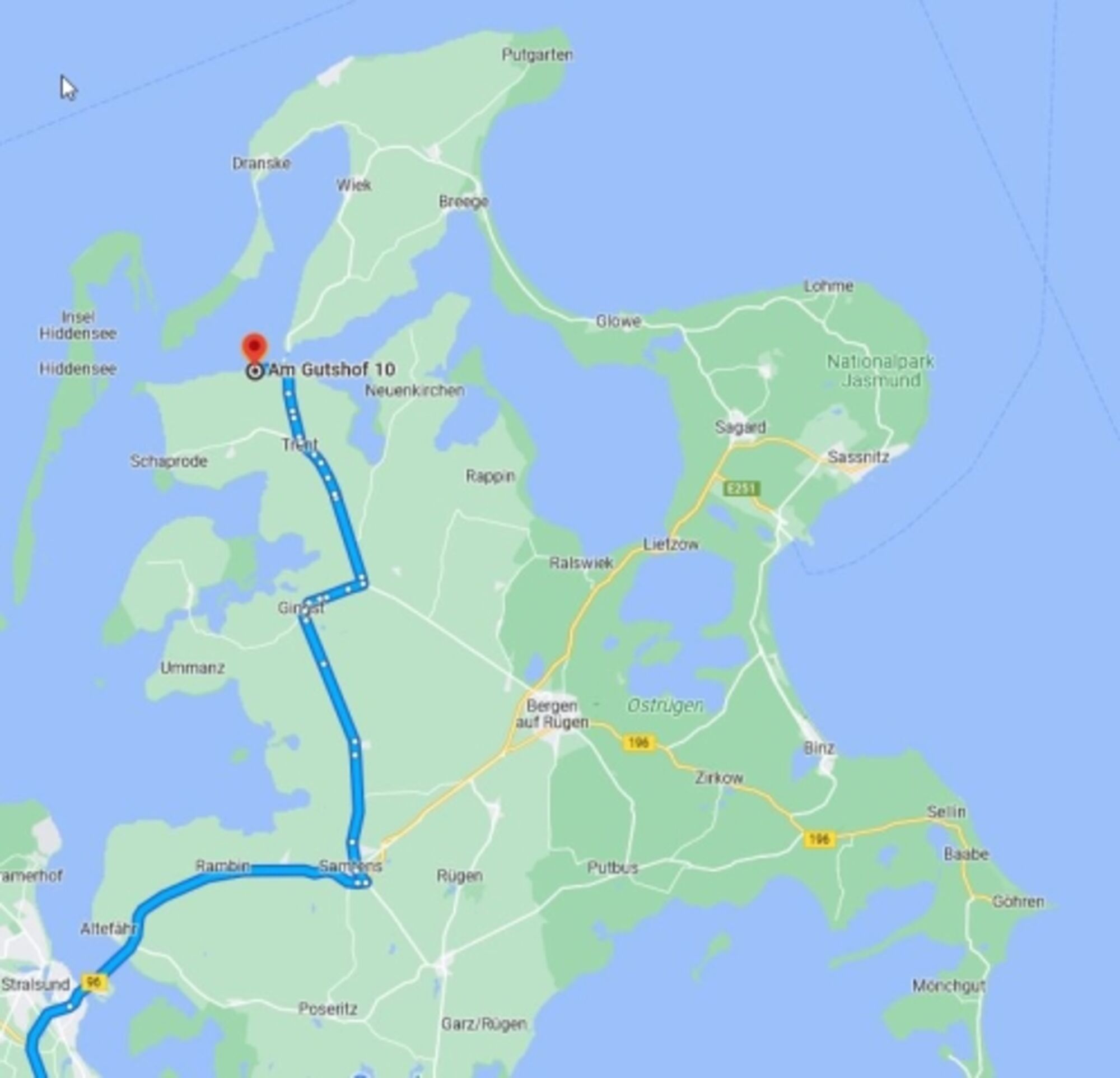 Kurz vor Erreichen der Fähre biegen Sie nach links ab Richtung „Aedenlife Hotel&Resort Rügen“. Bevor Sie zum Hotel kommen geht es gegenüber einer Kleingartenanlage links ab. Hier beginnt die Straße Am Gutshof.