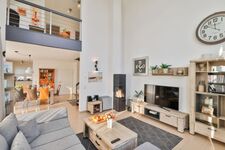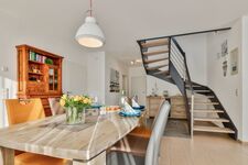 Im Erdgeschoss befinden sich 2 Schlafzimmer und 2 Bäder (eines davon Bad en Suite), eine modern eingerichtete Küche sowie ein großer Wohn- und Essbereich mit Kaminofen.