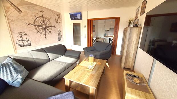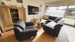 TV, SMART-TV, HDTV Flachbildschirm, Hi-Fi-Anlage mit Bluetooth, Bücher, 3er-Sofa, 2er-Sofa