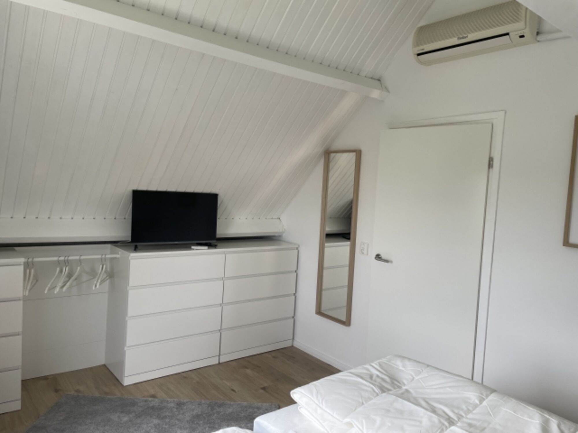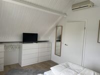 Das Elternschlafzimmer ist im Dachgeschoss mit einem Doppelbett (1,80) und Kleiderschrank ausgestattet mit Klima und TV