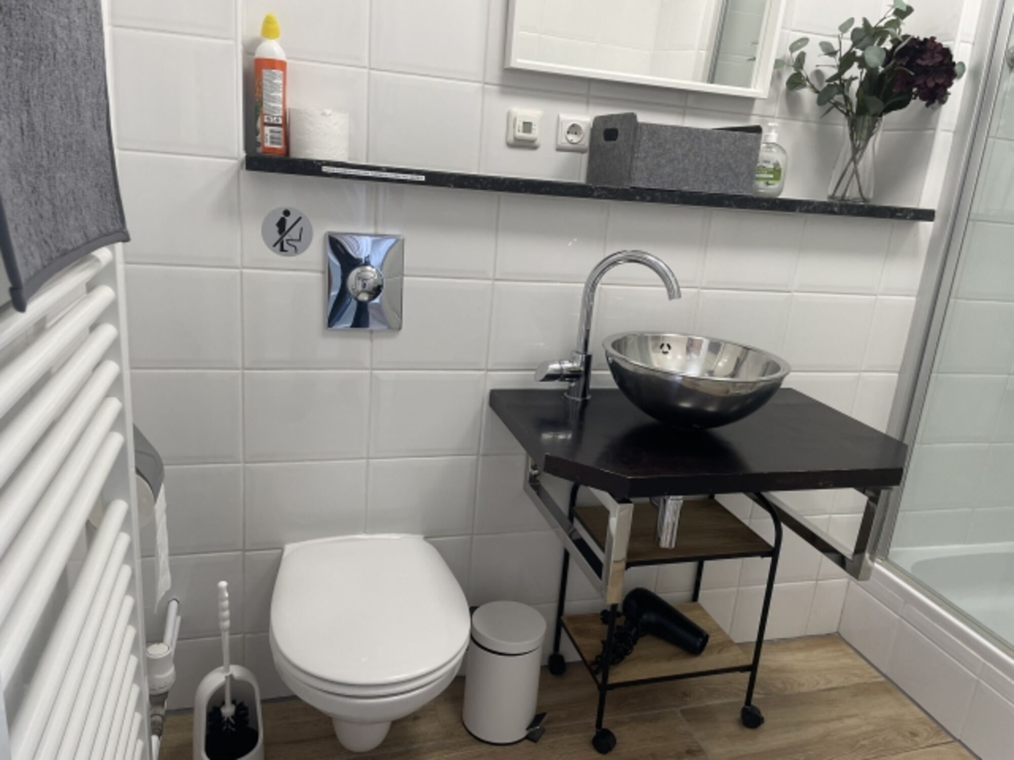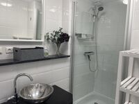 Das komplett neue Bad (2021) verfügt über eine Dusche, Waschtisch und einem Hänge-WC.