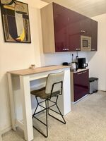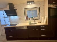 4-Platten Herd, Induktionsherd, Dunstabzugshaube, Kühlschrank mit Gefrierfach, Korkenzieher / Flaschenöffner, Gewürze (Salz, Pfeffer, Zucker), Geschirrhandtücher, Mülltüten, Essplatz in der Küche