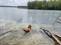 In der Umgebung gibt es diverse Seen - teils mit einem großen Angebot an Wassersport. Der Hund darf überall schwimmen.