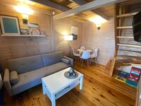 Der feinsandige Strand ist in nur ca. 10 Gehminuten erreichbar – ideal für einen entspannten Badetag oder einen Spaziergang bei Sonnenuntergang. Direkt hinter unseren Ferienhäusern befindet sich eine große Wiese – perfekt zum Gassi gehen mit dem Hund oder zum Spielen für Kinder.