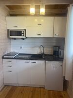 Induktionsherd, Kühlschrank mit Gefrierfach, Korkenzieher / Flaschenöffner, Geschirrhandtücher, Mülltüten