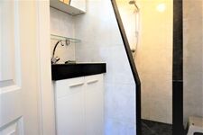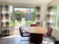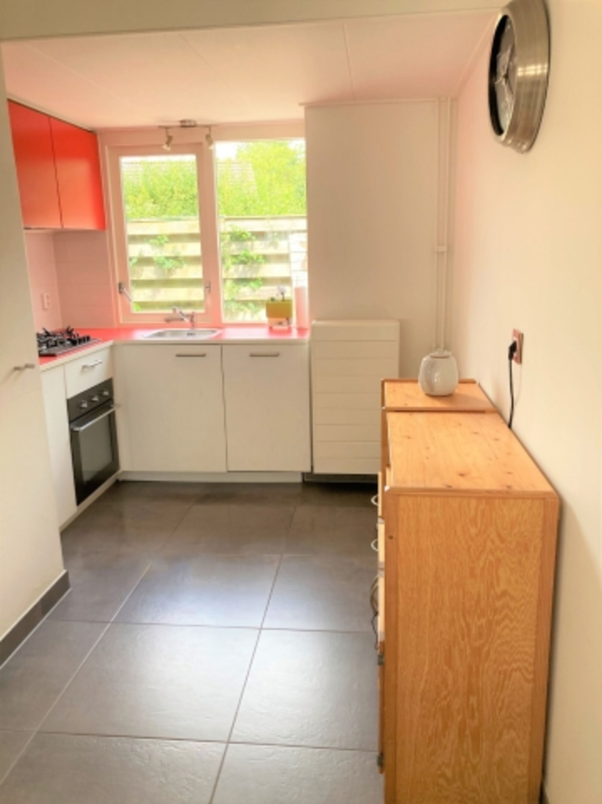 Vom Wohnzimmer aus können Sie durch die Schiebetüren in den sonnigen und vollständig umzäunten Garten gelangen. Es gibt einen großen Grill, eine schöne Sitzecke und Stühle mit Tisch und Sonnenschirm. In der Nähe des Hauses können Sie Ihr Auto auf einem Privatparkplatz abstellen, und Sie können das Haus über einen Fußweg leicht erreichen.