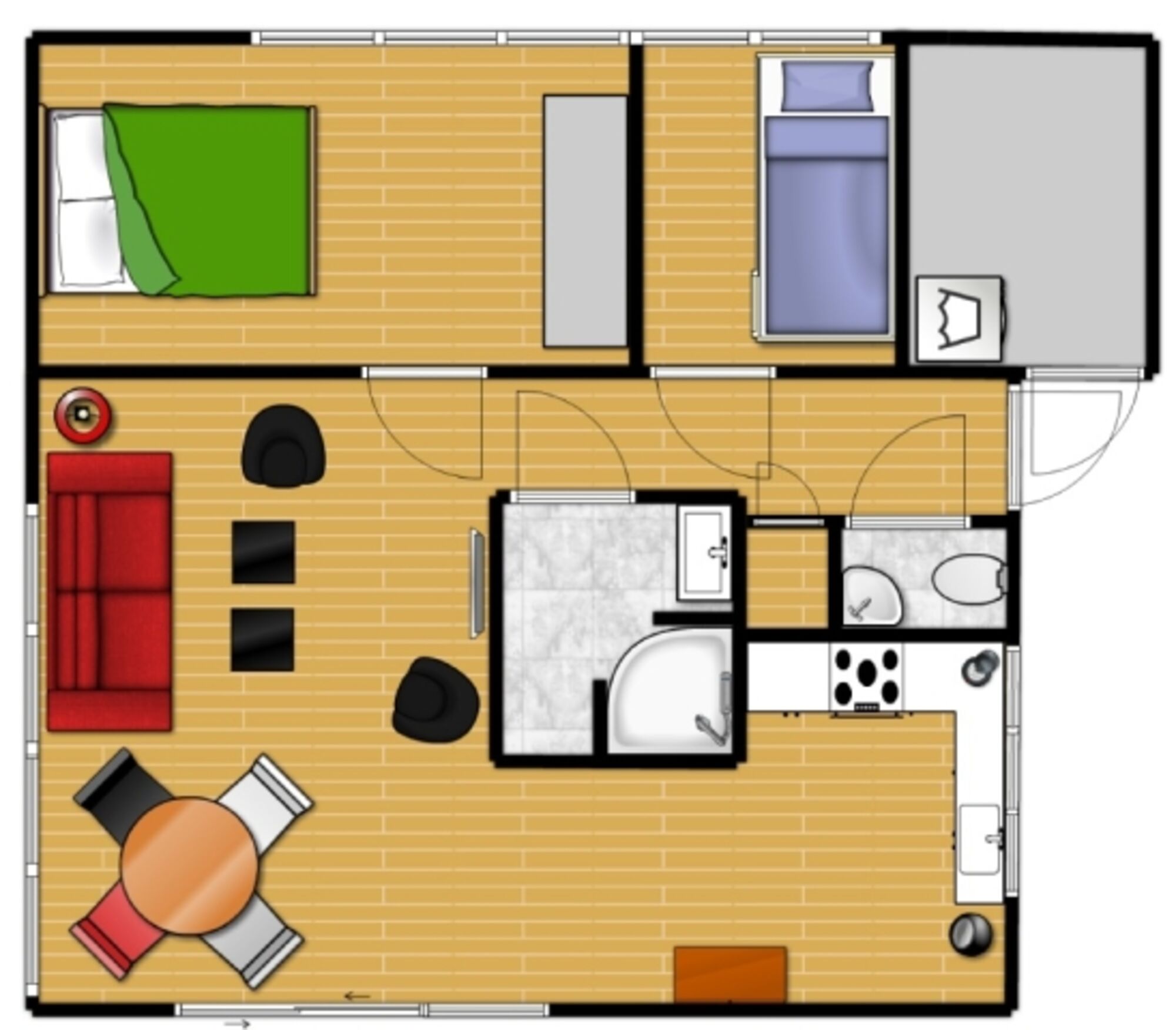Das Ferienhaus ist für 4 Personen ausgestattet. Das ganze Haus ist gefliest und es gibt WIFI. 2 Schlafzimmer sind vorhanden. 1 Schlafzimmer hat ein Doppelbett (1,40 m breit) mit einem Kleiderschrank und eine wunderbare Infrarotsauna für 1 Person. Das andere Schlafzimmer hat ein Etagenbett. Es gibt auch ein Kinderbett und einen Hochstuhl.