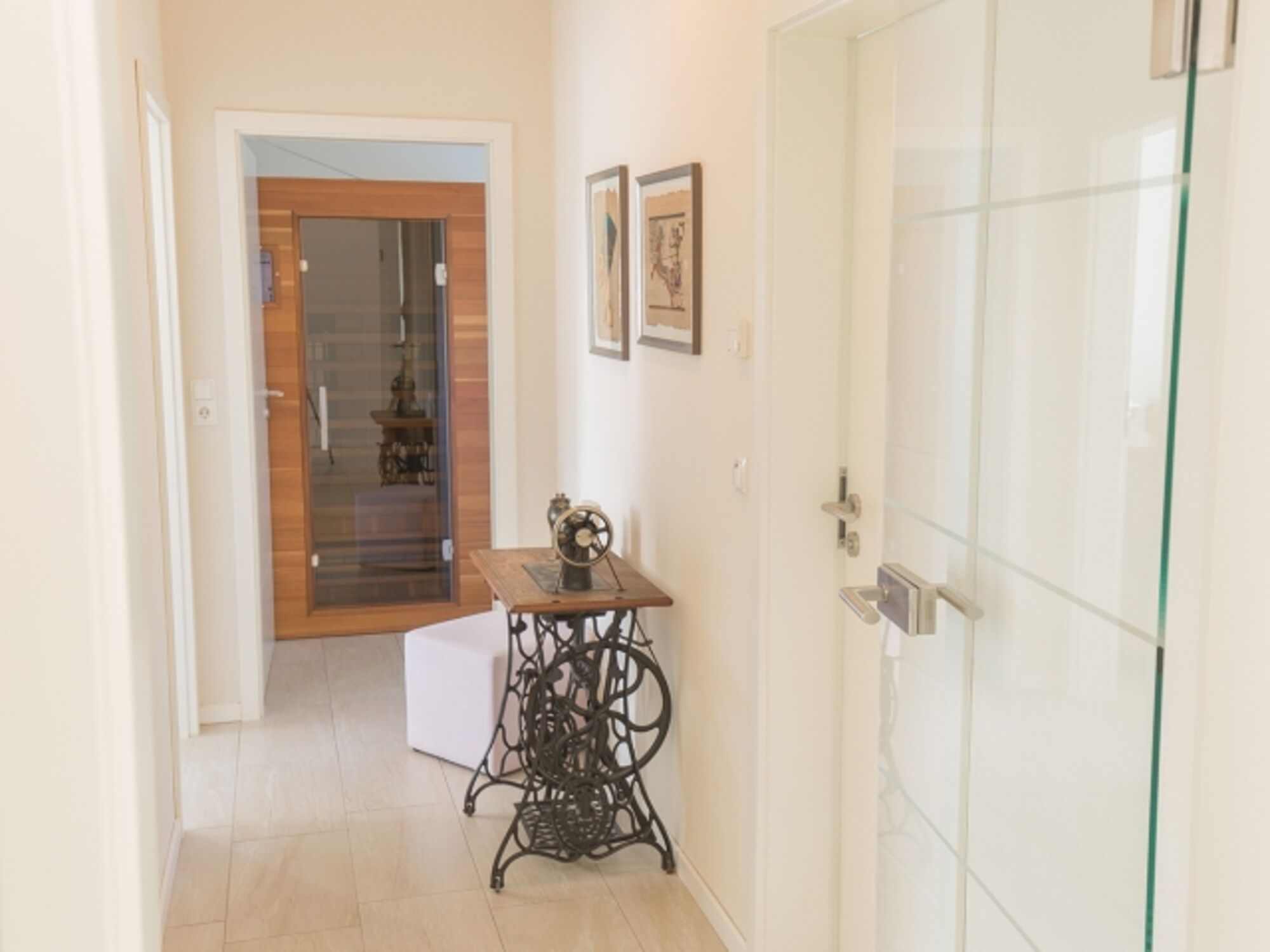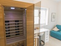 Das Haus verfügt über 2 Schlafräume mit je einem Doppelbett und ein Kinderzimmer mit 140x200-Bett. Im Kinderzimmer können Sie in der Infrarotsauna Wärme tanken.
