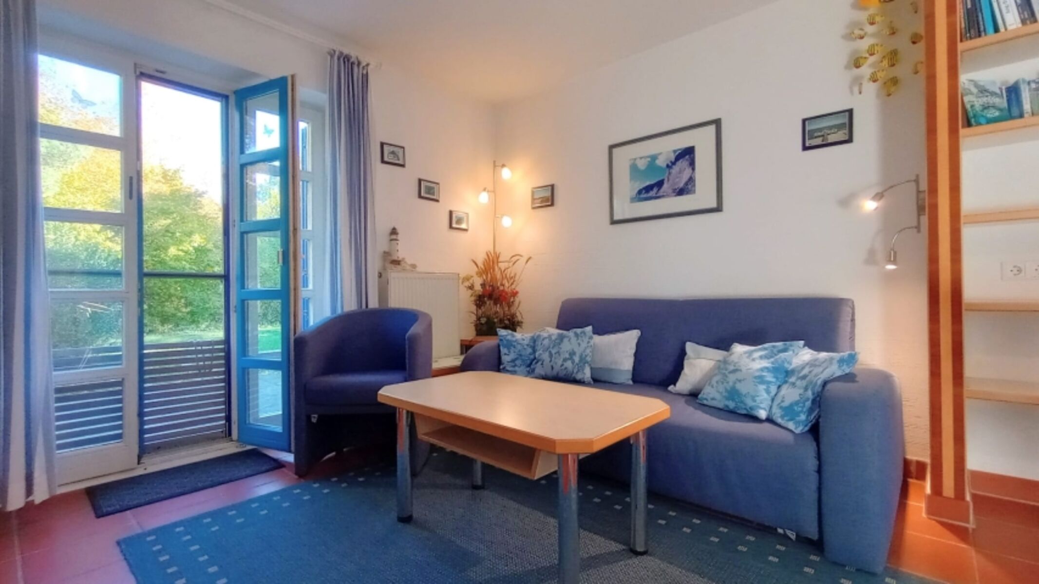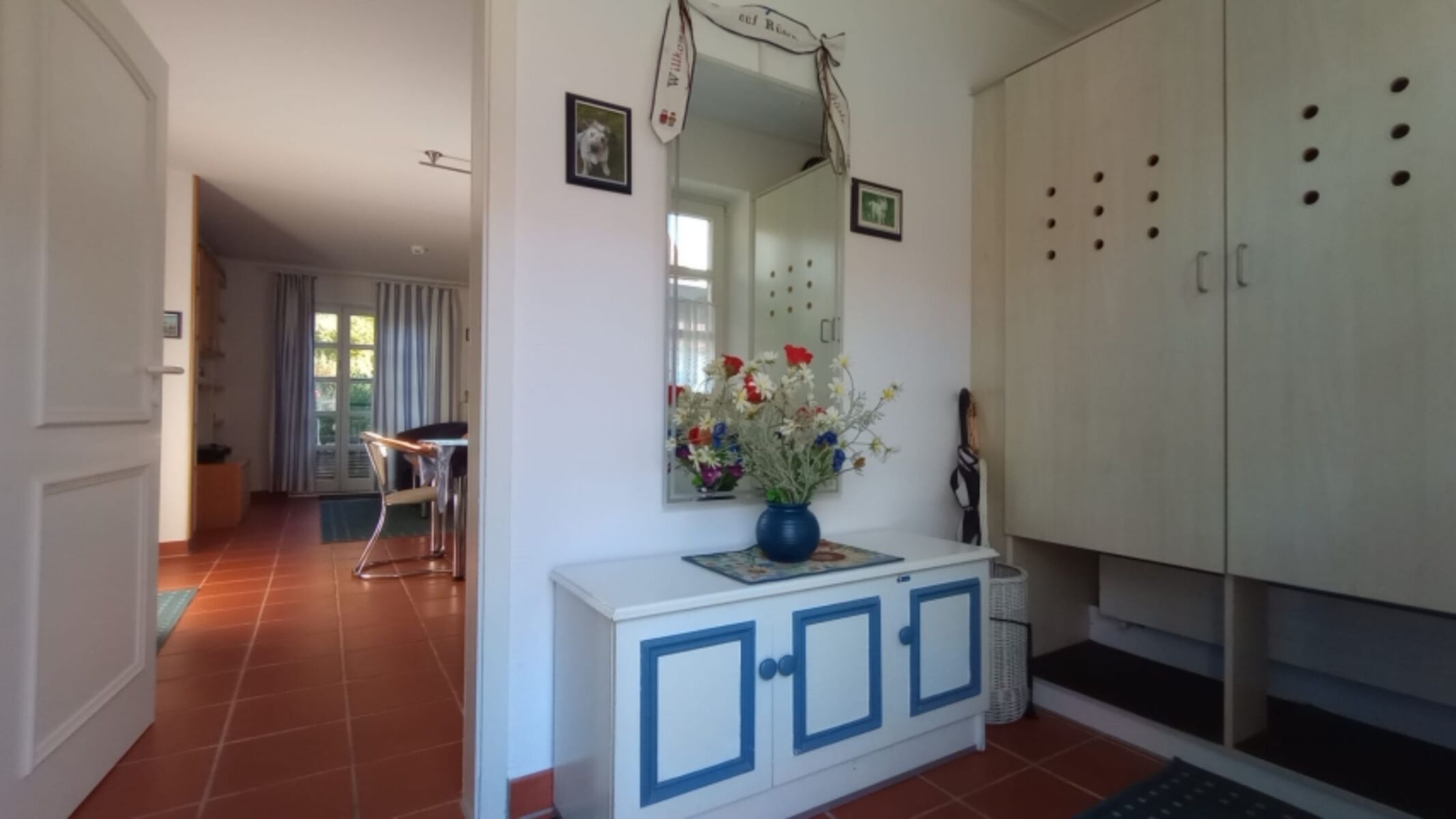 Ebenerdig mit geschützter Terrasse, regelmäßig überarbeitete, gepflegte Ausstattung. Ruhige Lage, ideal für Urlaub mit Hund!