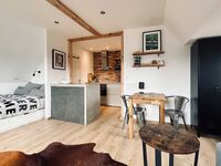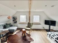Willkommen im kleinen, aber feinen Tiny Loft unter'm Dach – perfekt für 1 bis 2 Personen und natürlich den vierbeinigen Begleiter! Unser Apartment 4 im 1. OG des Haus West schaut nach Süd/Ost und wurde wie alle unsere Wohnungen bei TIDE4 gerade frisch renoviert.