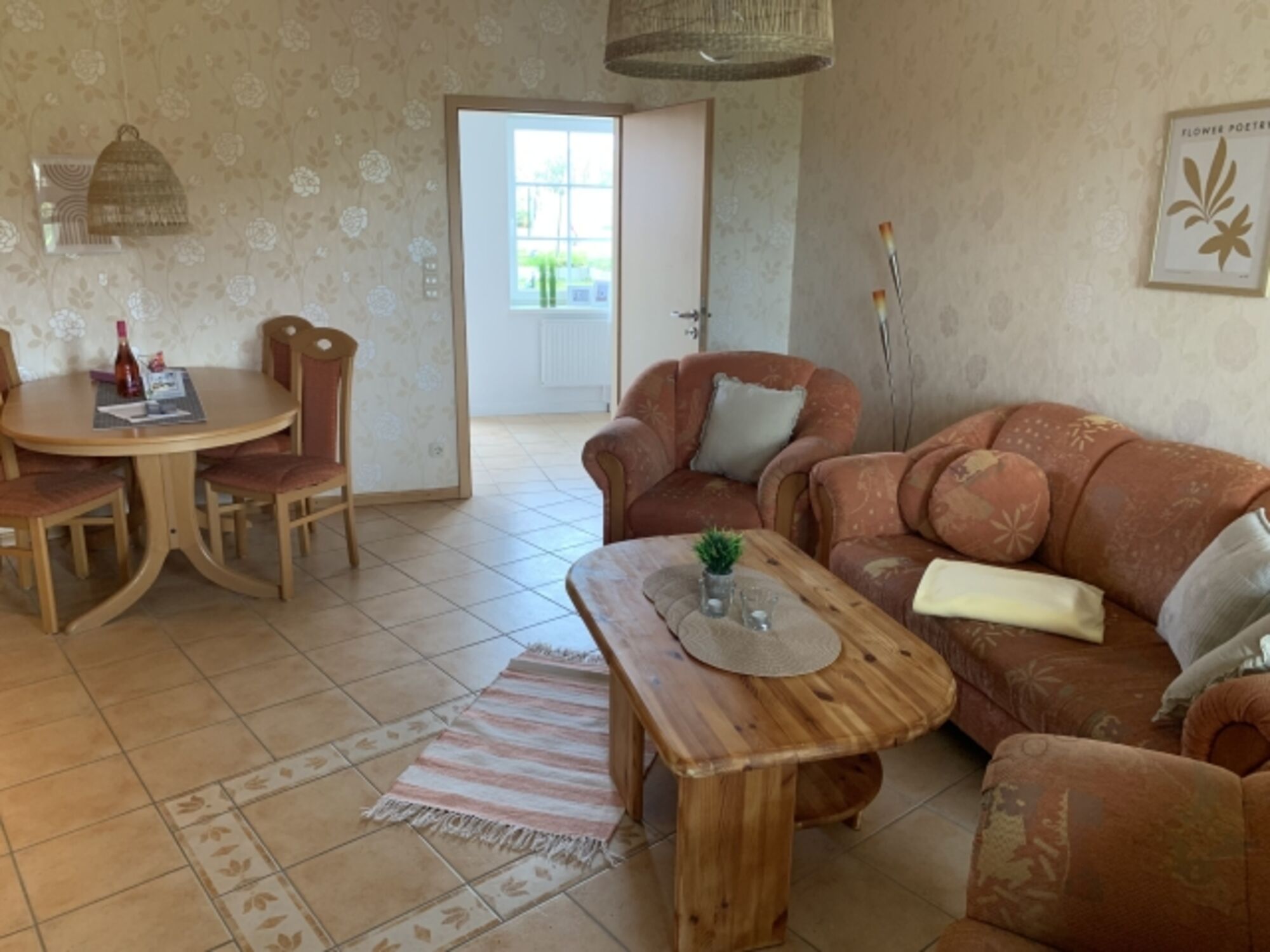 Die Ferienwohnung befindet sich im Erdgeschoss und bietet einen tollen Blick über die Wiesen und Felder der Umgebung.
