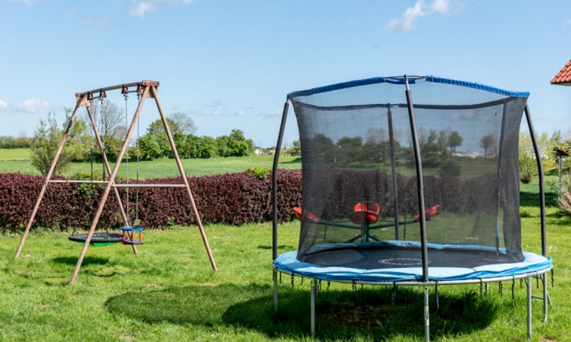 Auch ein Klettergerüst mit Rutsche ist für die kleinen Gäste am Haus.