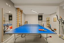 Die Gäste können den gepflegten Garten, den beheizten Pool und moderne Annehmlichkeiten wie Tischtennis, Fitnessgeräte, einen Kinderspielplatz, Dart und Sauna genießen.