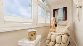 Direkt an einem der Schlafzimmer grenzt die herrliche und nach Süden ausgerichtete Loggia (rundherum verglaster Balkon) an. Da sich sämtliche Fenster der Loggia weit öffnen lassen, lädt die Loggia während des gesamten Tages z. B. zu einem privaten Sonnenbad oder auch zu einer erholsamen Zeit mit einem "guten Buch" ein. Sonnenuntergang inklusive!