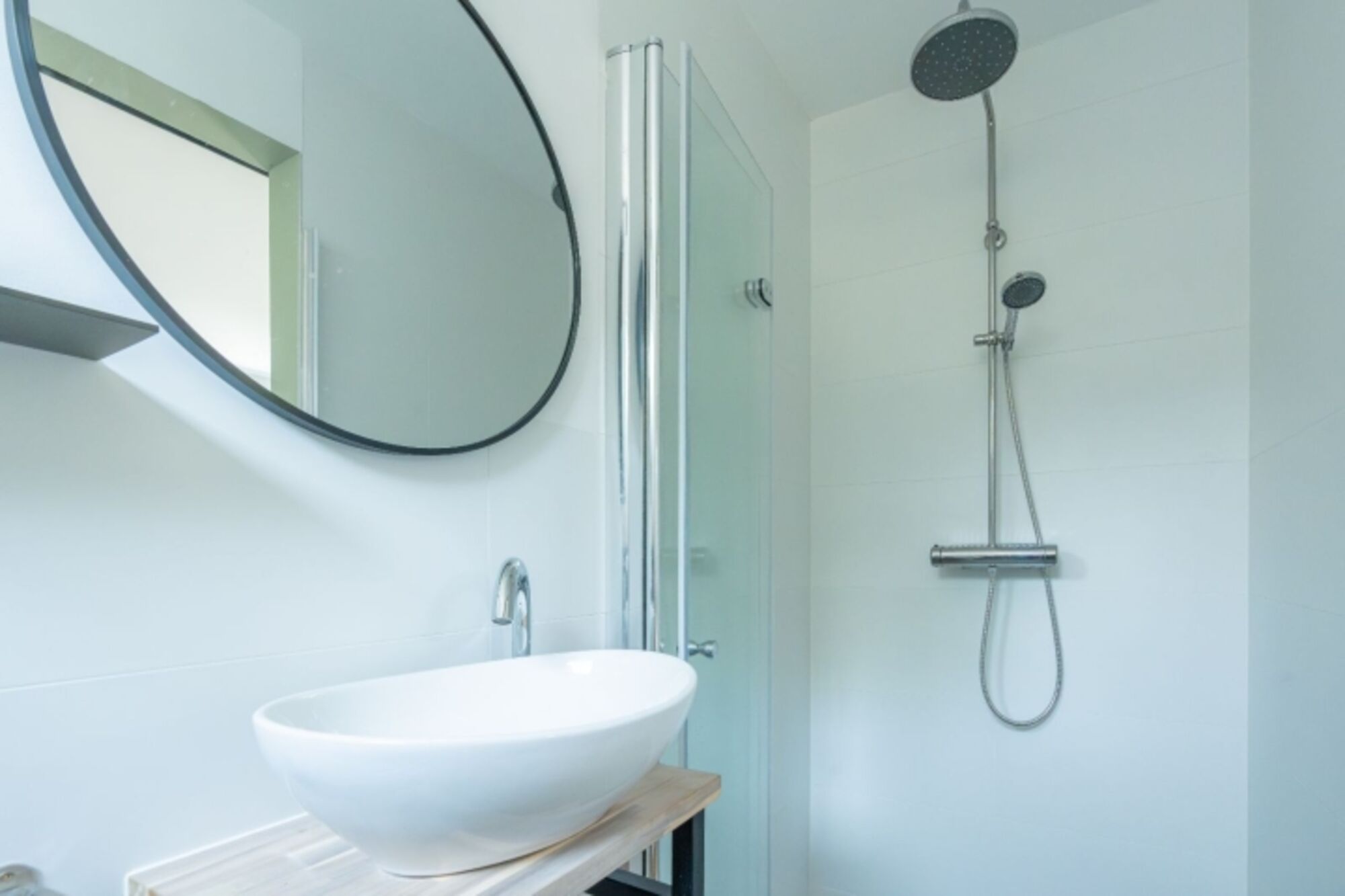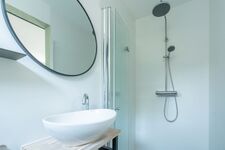 Waschbecken, Regendusche, Spiegel