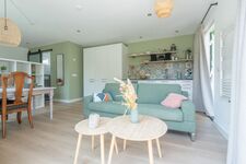 Das helle Studio verfügt über eine praktische Aufteilung. Kompakt, aber voll ausgestattet, um Ihren Aufenthalt an der Küste Zeelands in vollen Zügen zu genießen. Es gibt eine gemütliche Sitzecke mit SMART-TV und einen Essbereich für 2 Personen. Die angrenzende Terrasse bietet einen schönen Blick ins Grüne und ist mit einer Gartengruppe für 2 Personen, 2 Sonnenliegen und einem Sonnenschirm ausgestattet. Hier können Sie den Tag mit frischen Brötchen vom Bäcker beginnen.