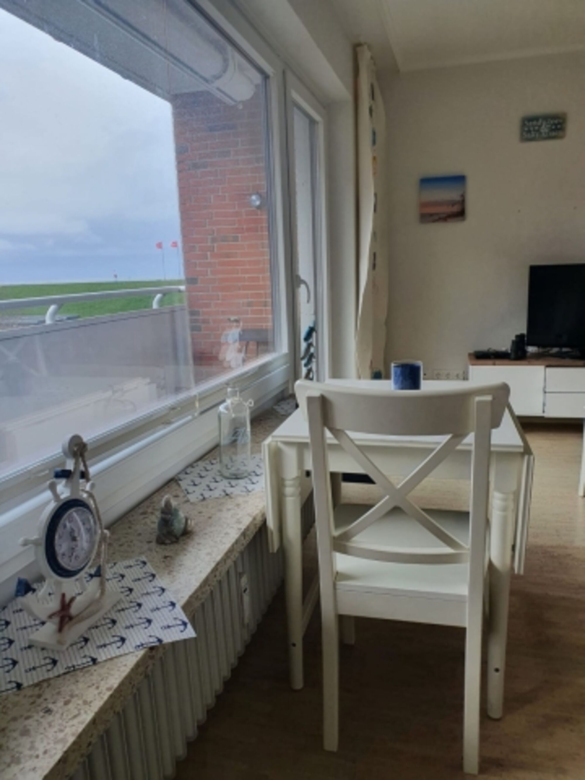 Maritim eingerichtete 2-Zimmer-Ferienwohnung direkt am Meer mit Nordseeblick. Schöner Süd-Balkon mit Sitzmöglichkeit und Markise. Ein Schlafzimmer mit Boxspringbett, ein Wohnzimmer mit großer Sitzecke und Schlafmöglichkeit und einer Ess-Ecke stehen zu Ihrer Verfügung! Ein Duschbad und eine kleine Pantryküche sorgen für Ihr Wohlgefühl. Nach ca. 50 Schritten sind Sie am Deich zur Perlebucht und der Nordsee. Die Stadtmitte mit der schönen Einkaufstraße, der Hafen und Hundestrand sind fußläufig erreichbar. Die Büsumer Bimmelbahn, die Sie kostenlos mit Ihrer Gästekarte nutzen können, hält direkt vor dem Haus. Auch ein kostenloser Parkplatz ist t vor dem Haus für Sie da! Ihrer Erholung und einem ungetrübten Urlaub steht also nichts im Wege!
