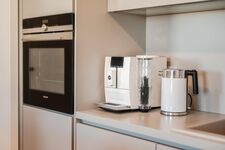 Induktionsherd, Dunstabzugshaube, Kühlschrank mit Gefrierfach, Kaffeevollautomat, Korkenzieher / Flaschenöffner, Geschirrhandtücher, Mülltüten