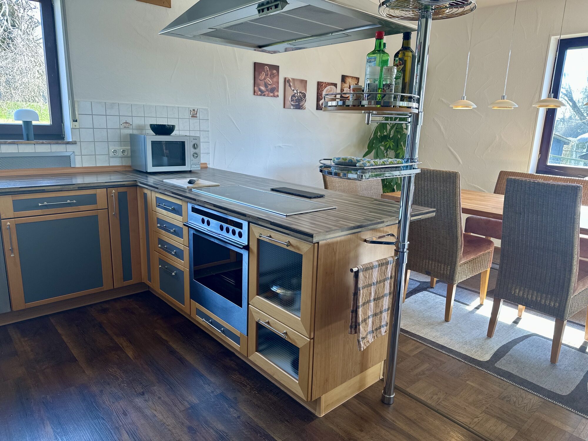 Draußen vor der Haustür gibt es eine Sitzbank und unterm Baum eine Sitzgruppe mit Tisch, 4 Stühlen und 2 Liegestühle und einem Grill für gemütliche Sommerabende. Weiterhin ein 1,60 m hoch eingezäunter, ausbruchsicherer Garten für Ihre Hunde mit Hundehaus und Unterschlupf oder Fahrradunterstellmöglichkeit und zusätzlich noch eine eingezäunte Spielwiese über 3.000 qm hinterm Haus zum Toben und Spielen mit Ihrem Hund.