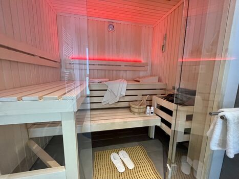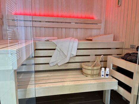 • Hauseigene Sauna mit Ambientebeleuchtung