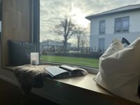 Die offenen und lichtdurchfluteten Wohn- und Essbereiche sorgen mit einer Raumhöhe von 2,80m und großen Fensterfronten sofort für Urlaubsstimmung. Zusätzliche gemütliche Sitzfenster laden zum Lesen, Träumen oder Rausgucken in die Natur ein.