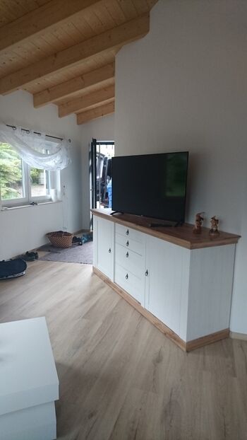 Das Haus ist komplett barrierefrei, besteht aus einem separatem Schlafzimmer, Wohn-Essbereich und barrierefreiem Bad.