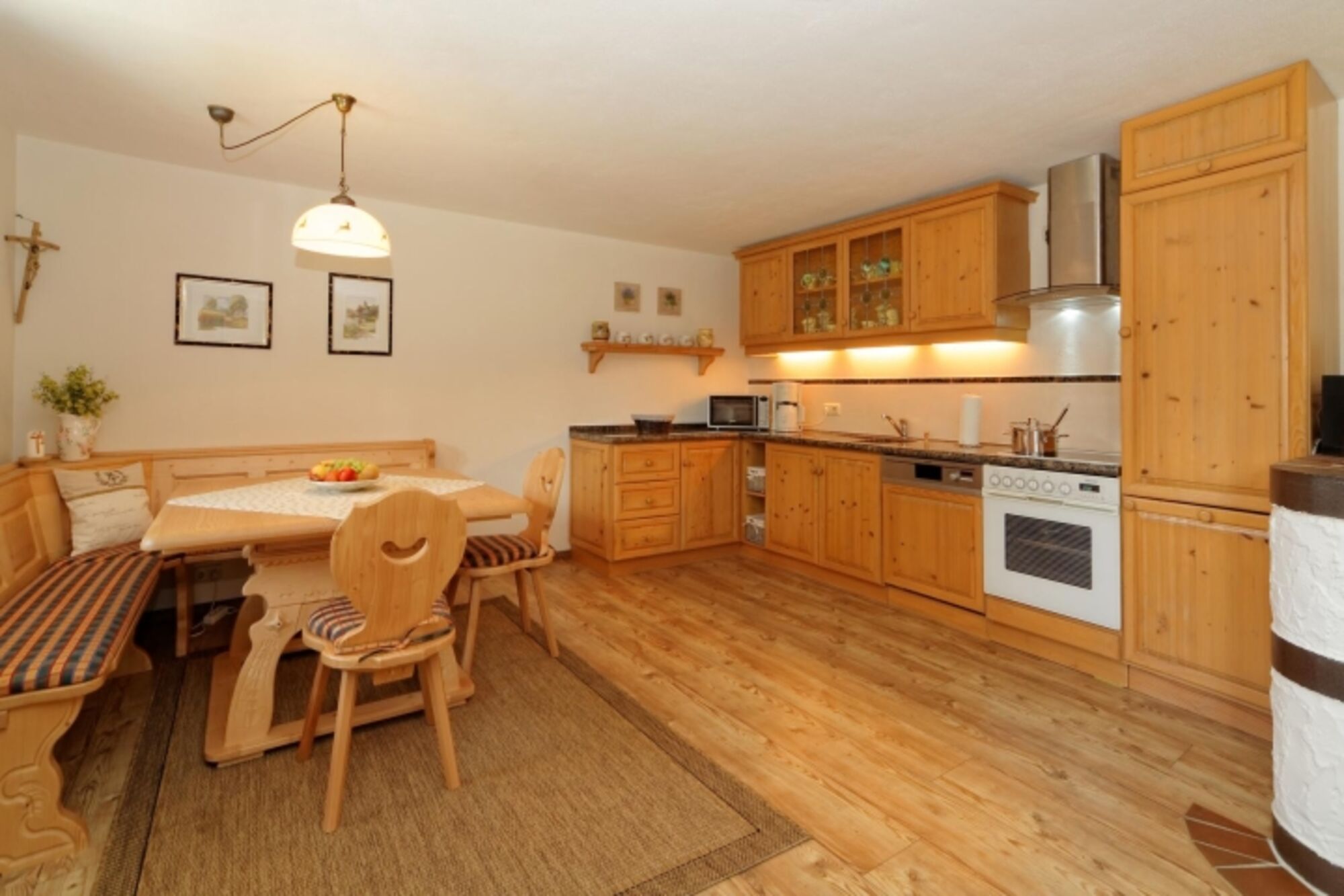 Es erwartet Sie eine rustikale Einrichtung aus Holz in allen Räumen.