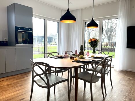 Wahres Kochvergnügen bietet die hochwertig vollausgestattete, offene Küche. Mit viel Platz zum gemeinsamen Kochen und Essen. Hier macht Selbstverpflegung richtig Spaß.