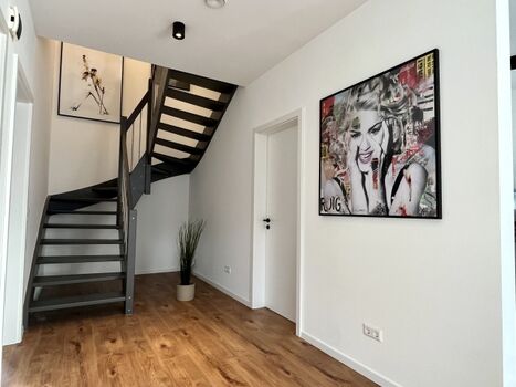 Abgerundet wird das Raumangebot im Erdgeschoss durch einen Hauswirtschaftsraum, ein Gäste-WC und eine große Diele mit Garderobe. Selbstverständlich steht Ihnen eine Waschmaschine kostenfrei zur Verfügung.