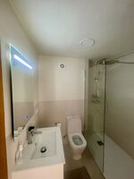 Fenster im Bad, Fliegengitter, Regendusche, Spiegel, Waschbecken