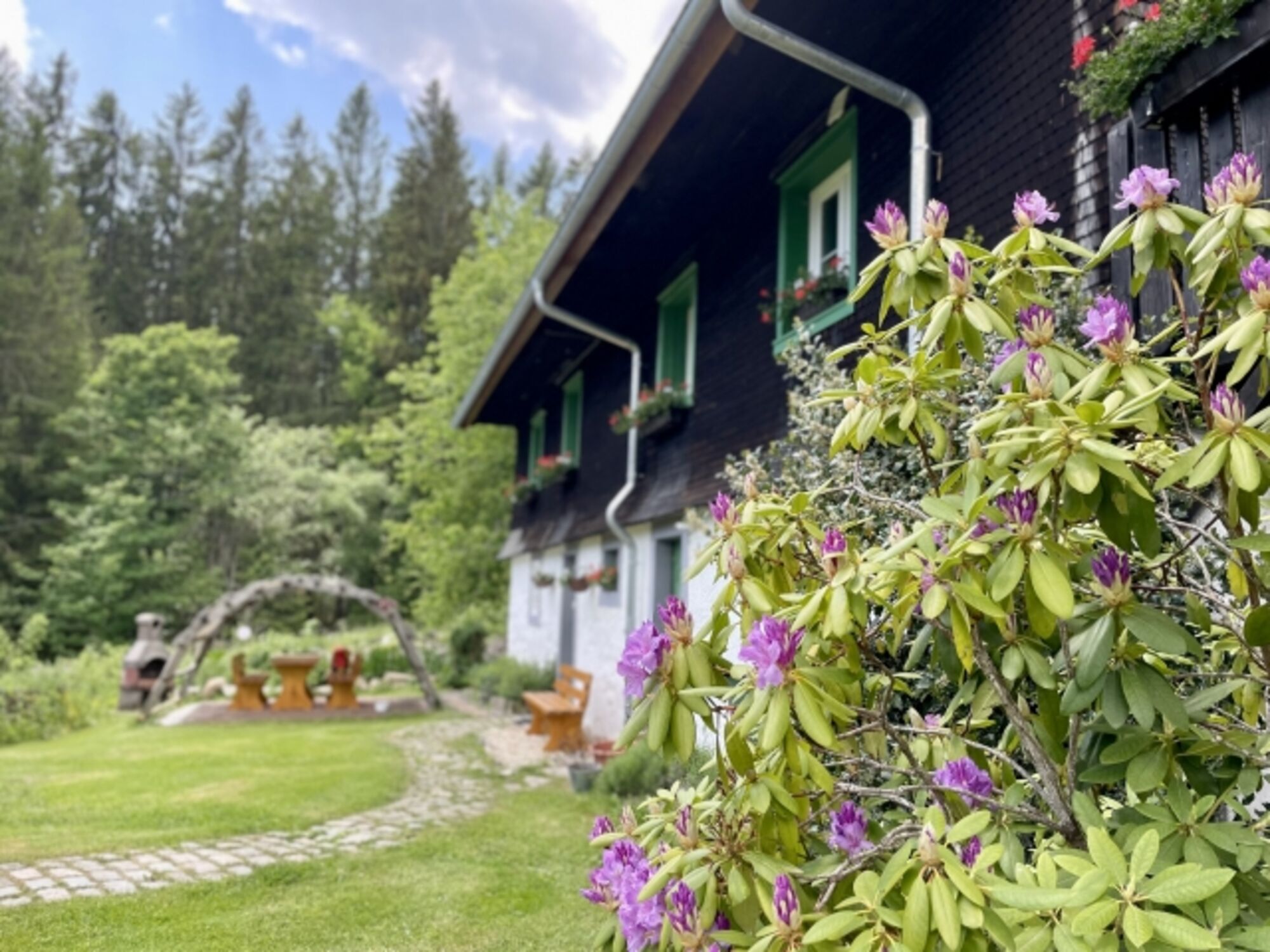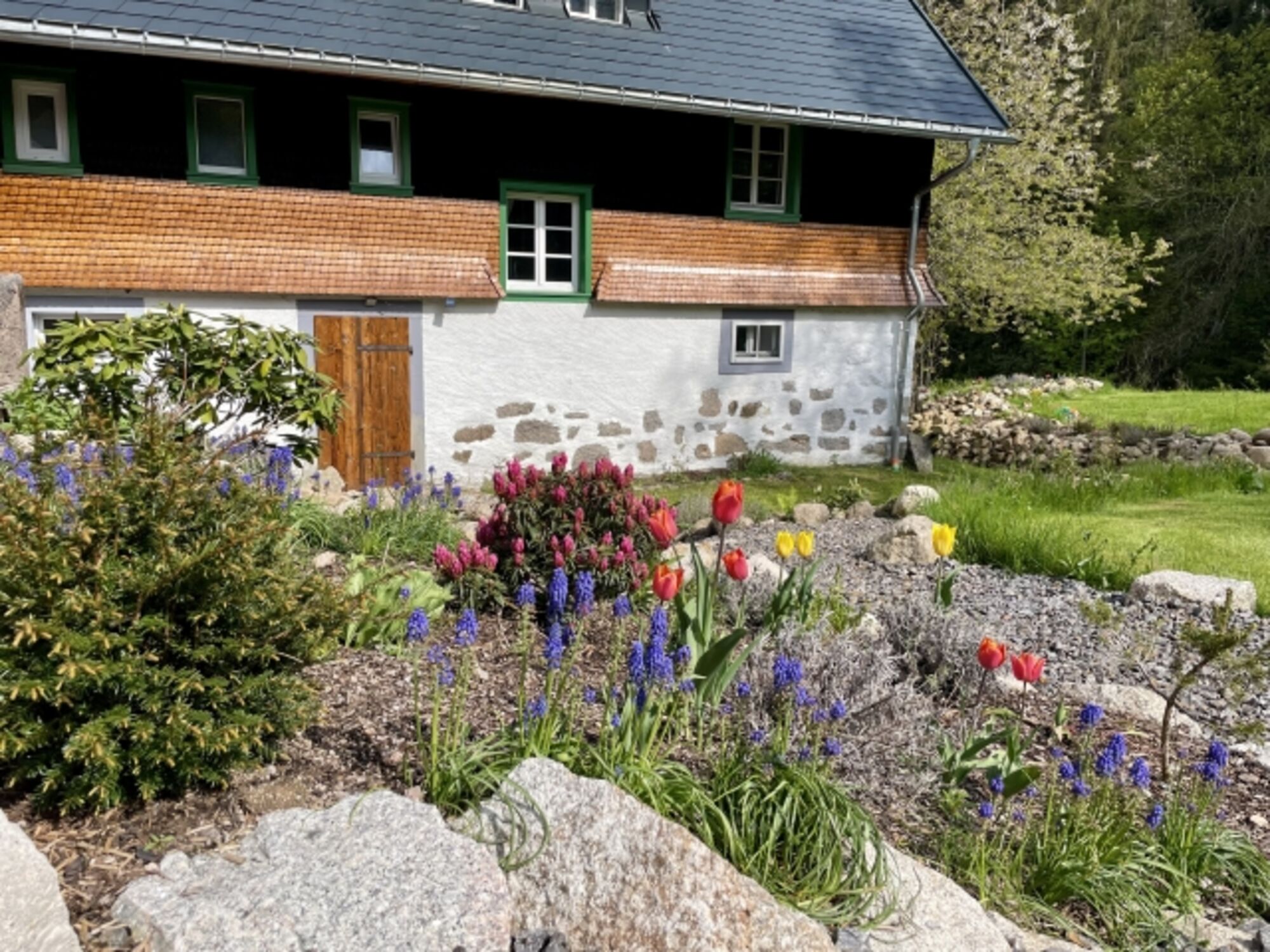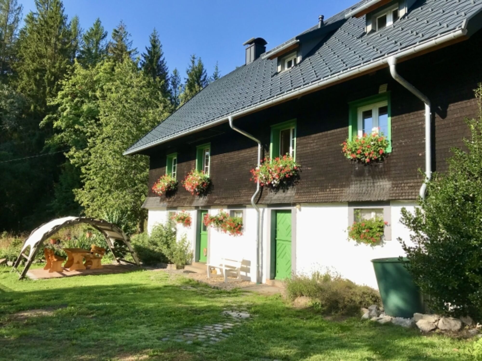 Der Hof liegt wunderbar ruhig direkt am Waldrand, umgeben von einem grossen Garten und einem kleinen Bachlauf, der hinter dem Haus entlang plätschert. Der Schluchsee ist von hier aus bequem in ca. 10 Minuten zu Fuss erreichbar. Der grosse Garten lädt zum Entspannen, Sonnenbaden und Grillen ein.