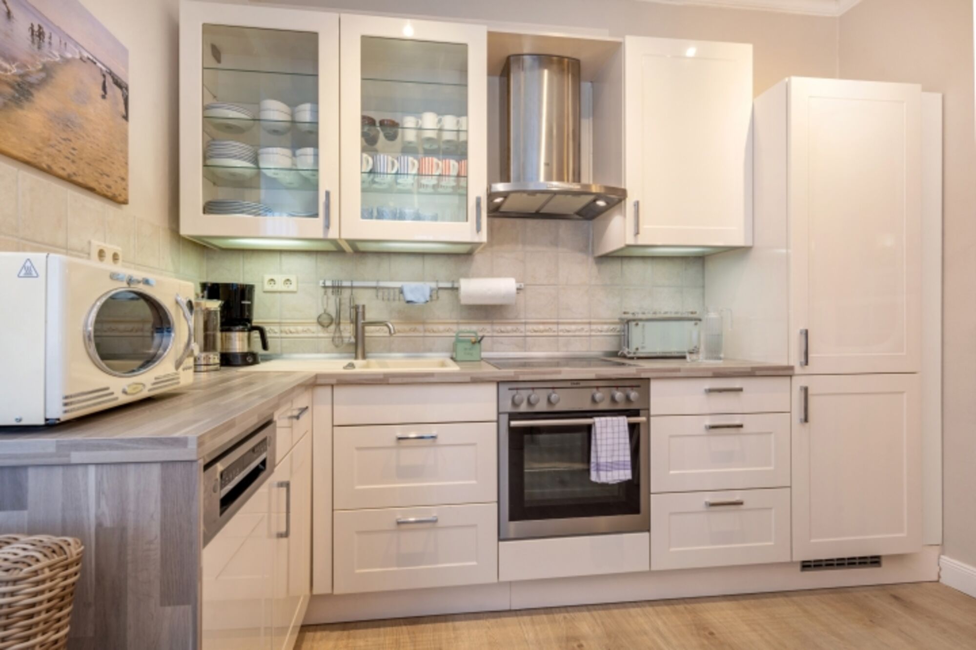 4-Platten Herd, Cerankochfeld, Dunstabzugshaube, Gefrierschrank, Mixer, Korkenzieher / Flaschenöffner