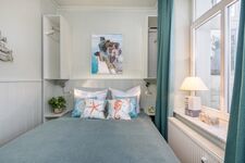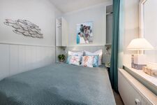 Das kleinere Schlafzimmer ist ausgestattet mit Doppelbett (1.60x2m), zwei kleinen Kleiderschränken und TV.