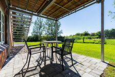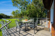 Vor allem in den Sommermonaten bietet sich die geräumige Terrasse mit Sitzgelegenheit zum Entspannen an. Außerdem gehört zu jeder Wohneinheit ein Strandkorb – der ist nicht nur gemütlich, sondern schafft das ultimative Nordsee-Feeling.