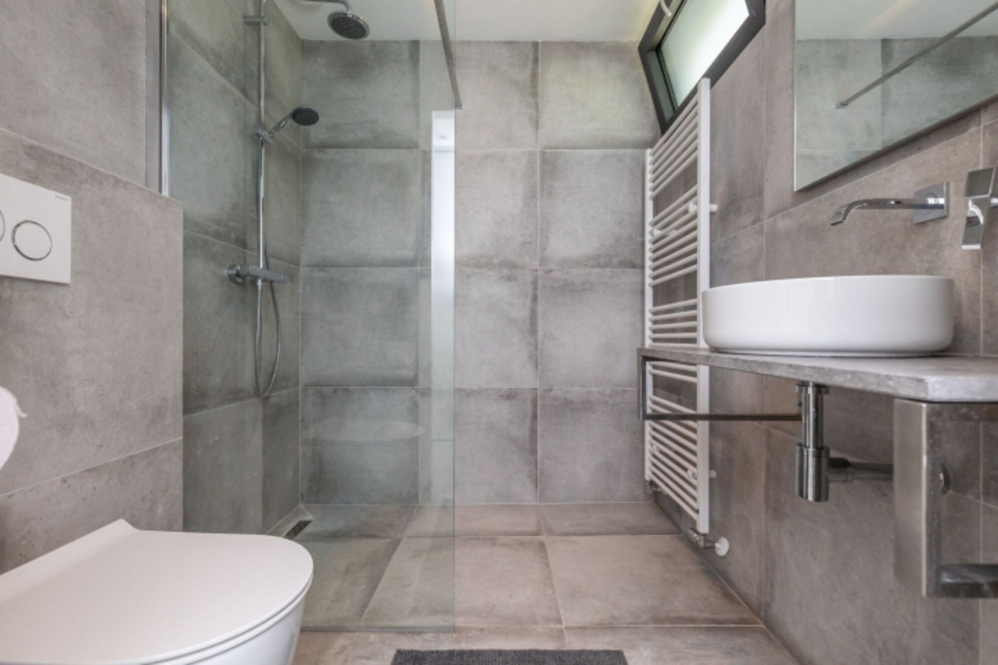 Waschbecken, Regendusche, Spiegel