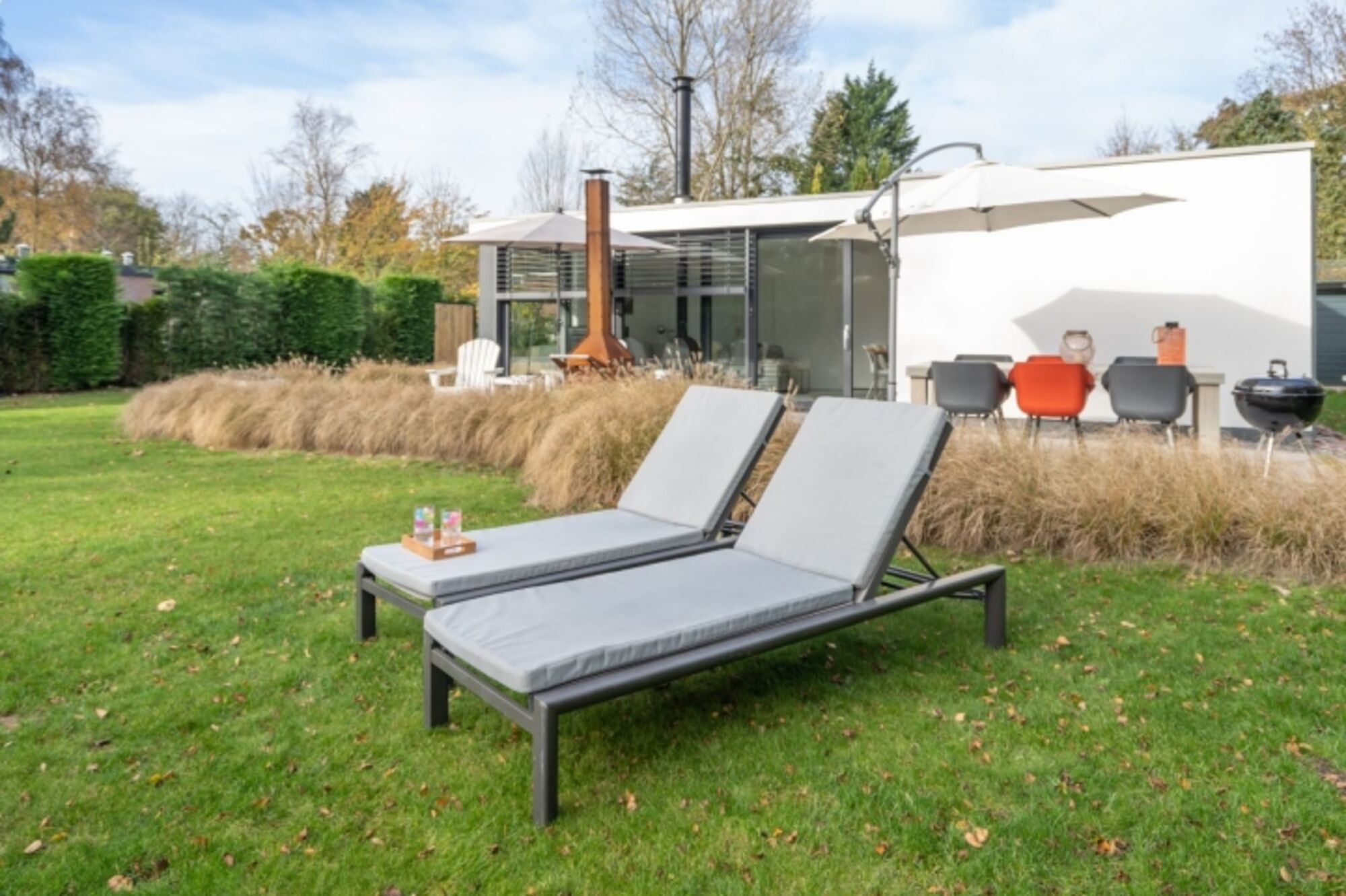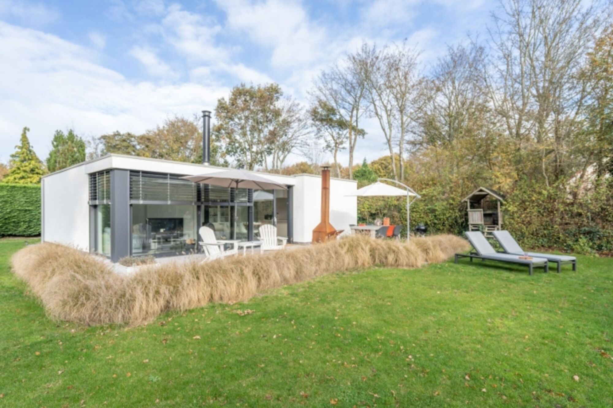 Das sehr moderne, freistehende Haus ist von der Straße aus kaum sichtbar. Auf dem Gelände, das Sie mit einem Tor abschließen können, gibt es Parkplätze für 2 Wagen. Der große, eingezäunte Garten mit geräumiger Terrasse ist vollständig eingeschlossen. Hier können Sie die langen Sommerabende ausklingen lassen.