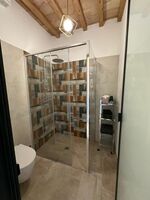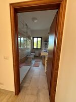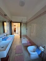 Es stehen 2 große Schlafzimmer mit Doppelbett, Kleiderschrank, geräumiger Kommode, Sitzgelegenheit und ein Wohnzimmer mit Balkon mit einem sehr bequemen Bettsofa (160x190) zur Verfügung. Alle Zimmer sind im ersten Stock mit Diele und kleiner verglaster Veranda. Ebenso im ersten Stock ist ein großes Bad mit Dusche (85x120), Doppelwaschbecken, Bidet und WC.