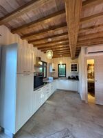 bereich. Komplett ausgestattet ist mit Waschmaschine, Geschirrspülmaschine, Induktionskochfeld, Umluftherd, Kühlschrank mit Gefrierfach, Kaffeemaschine, Espressomaschine, Wasserkocher, Toaster, Entsafter. Außerdem Besteck, Geschirr, Töpfe und Pfannen, Gläser, etc.. Die gesamte Möblierung der Villa ist Neu.