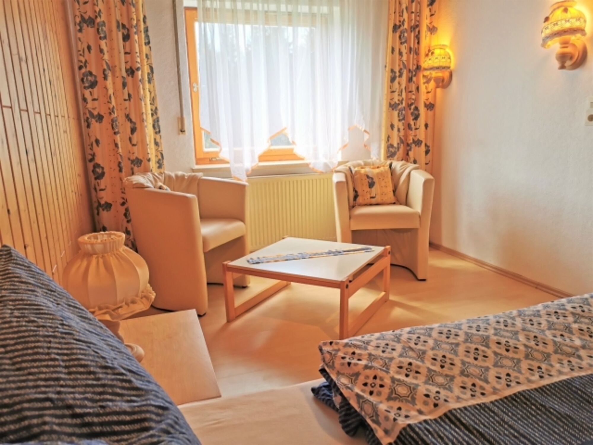inkl. Leseecke mit 2 Sesseln und Tisch, Babybett auf Anfrage (Aufpreis) Doppelbett 1,80 x 2,00m, Spiegel, Leselampe am Bett