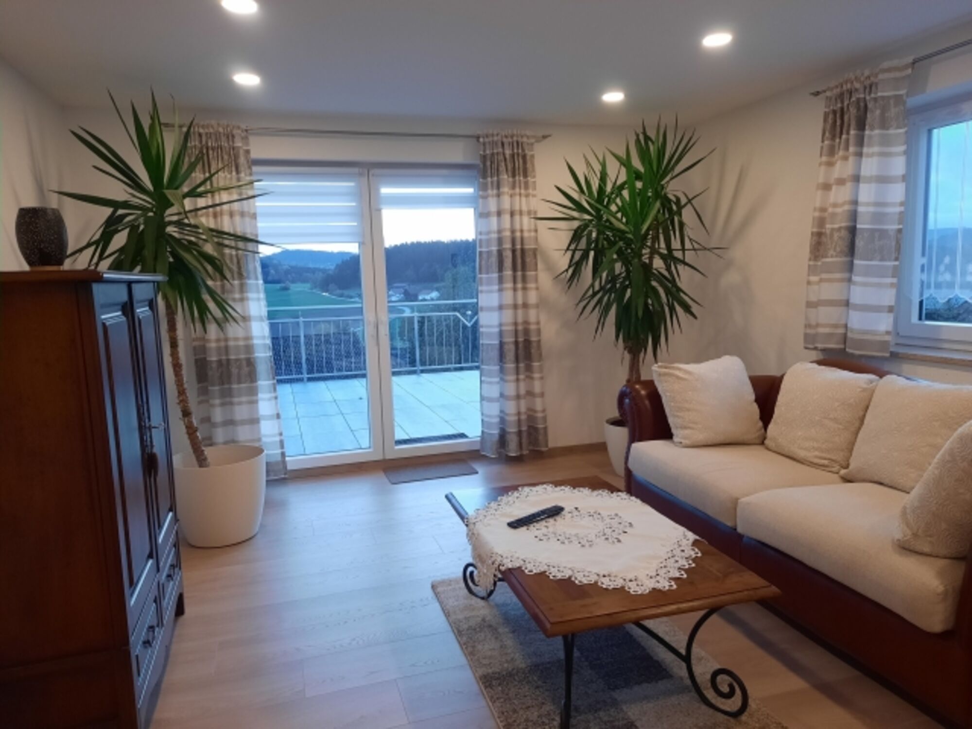 Sie wohnen in einer neu renovierten, gemütlich eingerichteten Ferienwohnung mit tollem Ausblick und einer 40 qm großen Sonnenterrasse. Die Wohnung ist voll ausgestattet. Für Ihre vierbeinigen Begleiter sind Fressnäpfe und Handtücher vorhanden. Wunderschöne Spaziergänge starten Sie ab Haustür oder Sie fahren an den Blaibacher- oder Höllensteinsee und verbringen dort entspannte Stunden. In der Wohnung gibt es eine Infomappe, in der Sie viele Vorschläge für Ausflugsmöglichkeiten finden.
