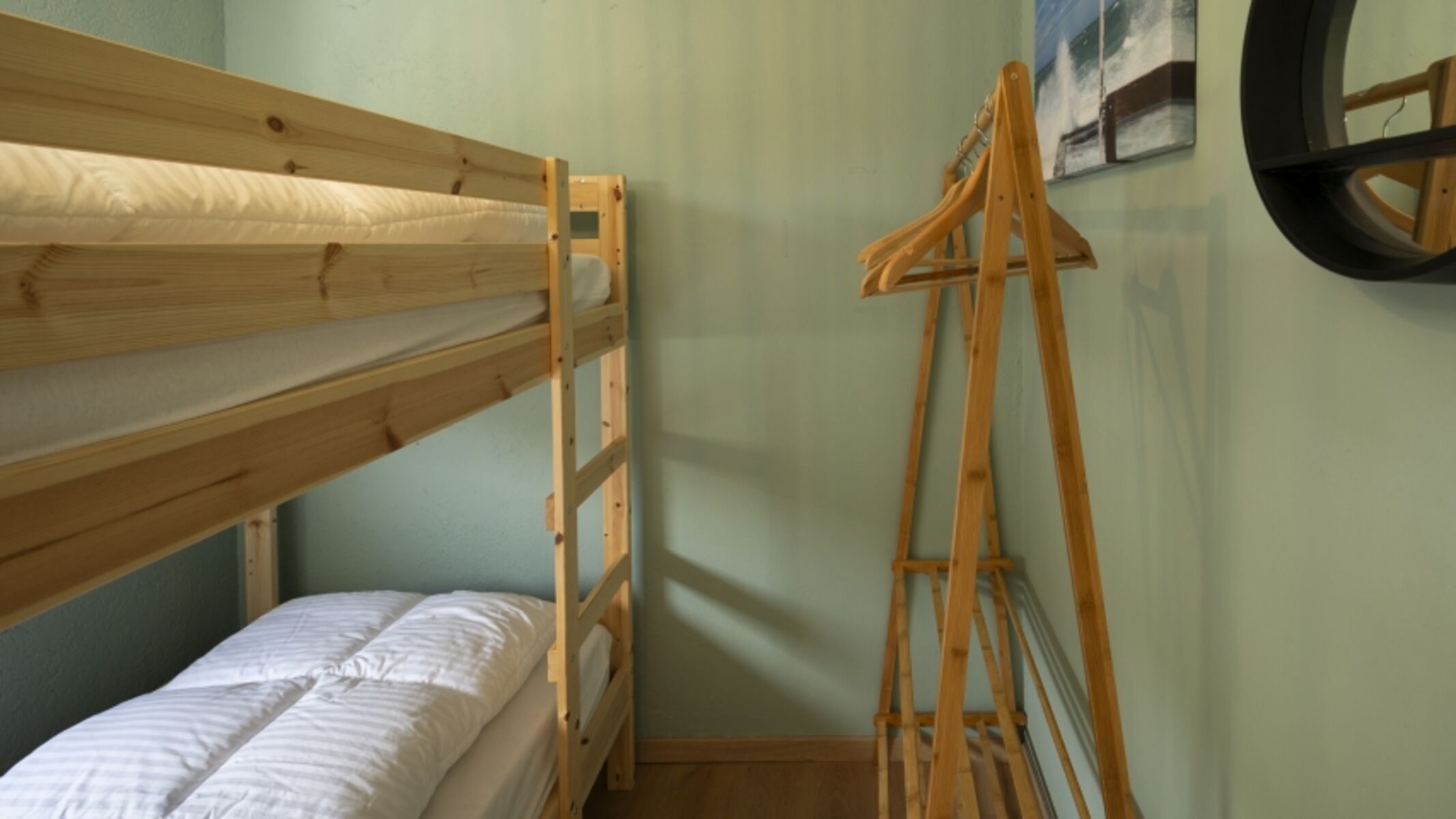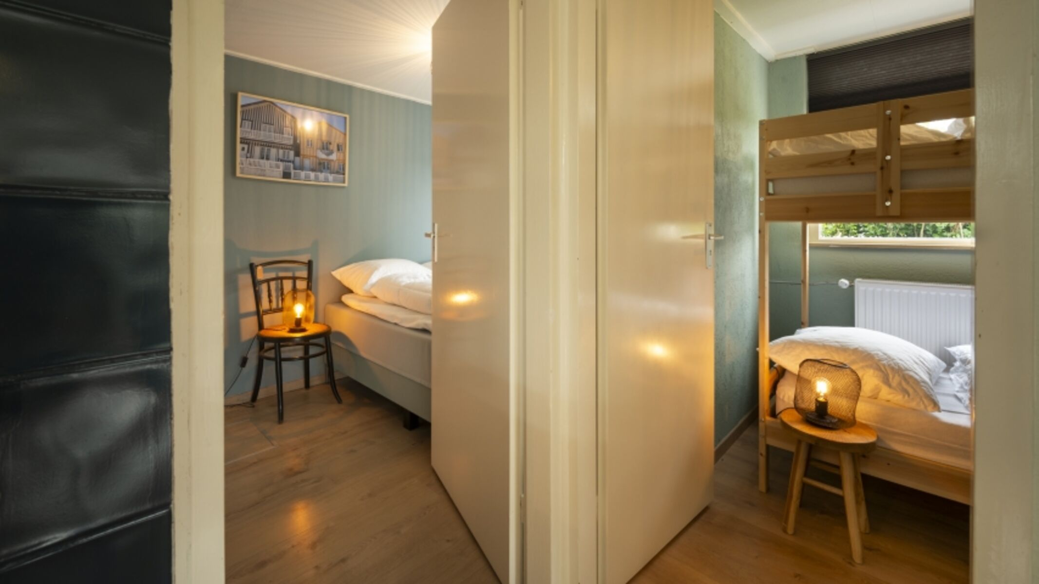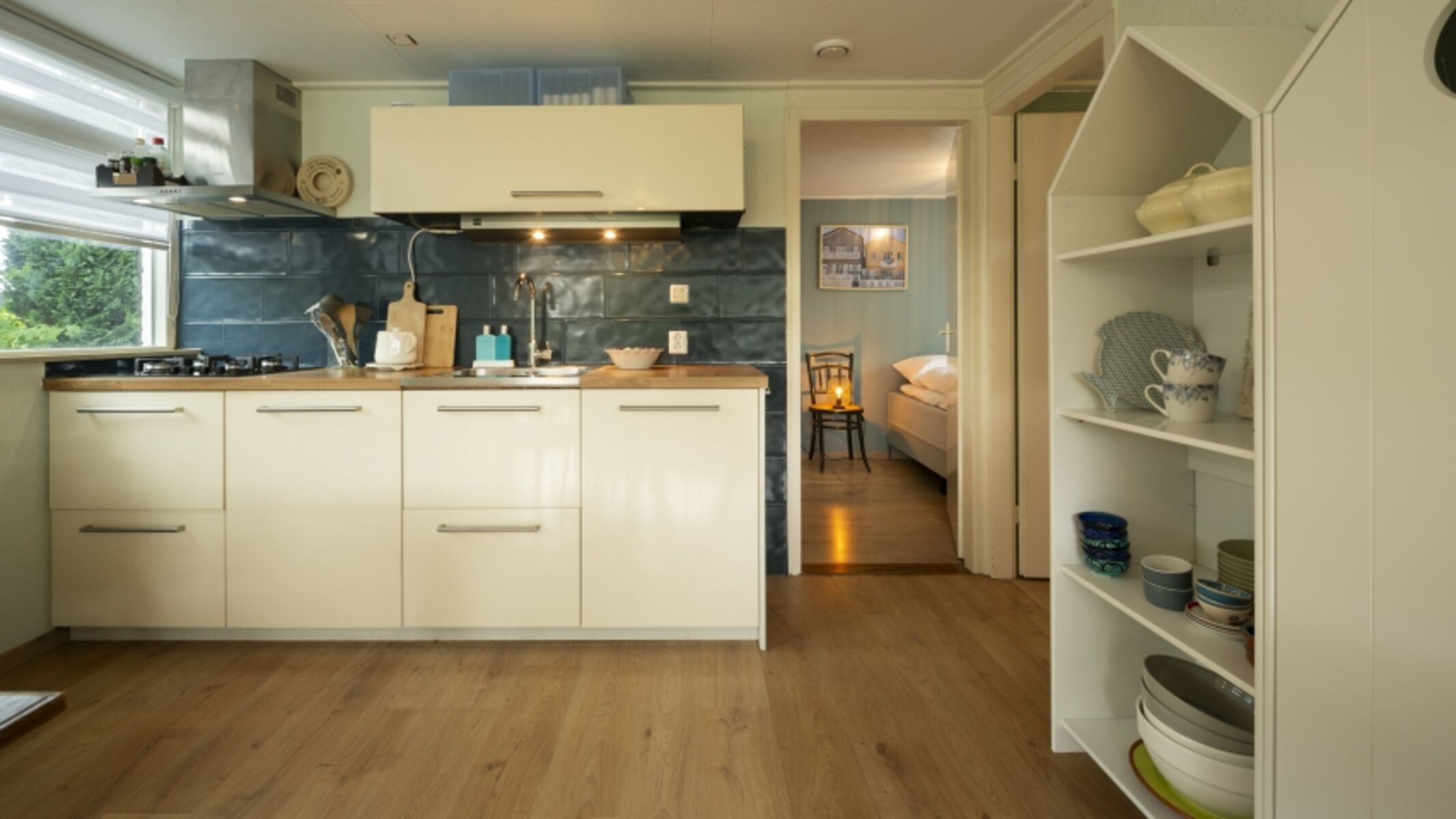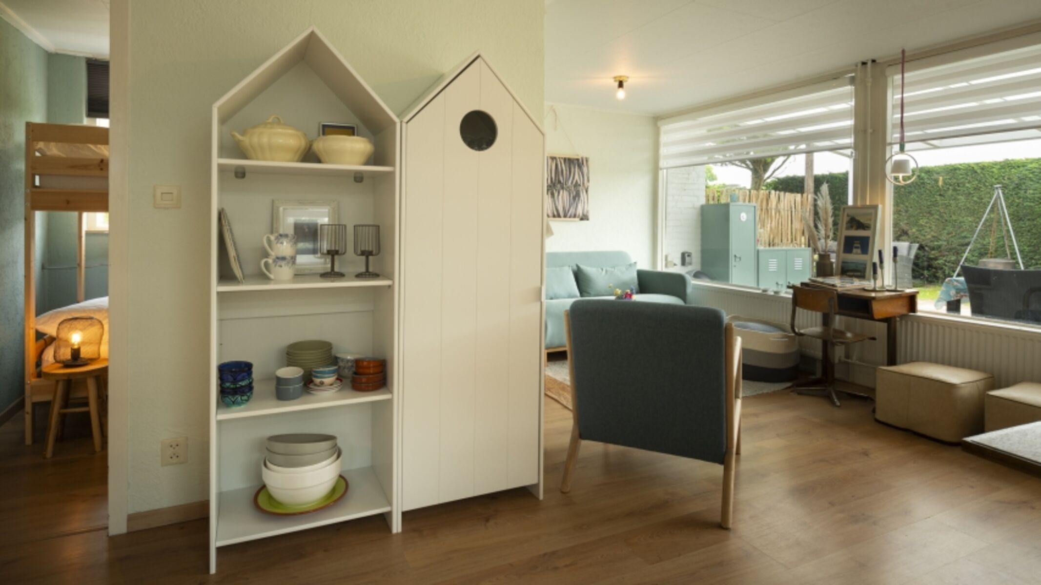 Die Ferienbungalow "Haus am Meer" ist ein gemütlich und geschmackvoll eingerichtetes Haus mit einem gemütlichen offenen Wohn- und Esszimmer. Die großen Fenster sorgen für einen ungehinderten Blick auf den Garten. Die Küche ist klein aber fein und mit allen Annehmlichkeiten ausgestattet, wie einem Kühlschrank mit Gefrierfach, einer Kombi-Ofen/Mikrowelle und einem Geschirrspüler. Der Bungalow verfügt über zwei helle und geräumige Schlafzimmer, eines davon mit Etagenbett. Über das Hauptschlafzimmer mit Doppelbett gelangen Sie zum Badezimmer mit Dusche, WC, Waschbecken und Waschmaschine.